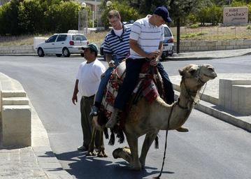 | Keywords: US Navy 080618-N-3316L-021 Boatswain's Mate 3rd Class Jonathan Lee and Seaman William Whale finish up a camel ride in Jerusalem during a MWR-sponsored tour of the Holy Land, part of a port visit by the amphibious transport dock.jpg en JERUSALEM June 18 2008 Boatswain's Mate 3rd Class Jonathan Lee and Seaman William Whale finish up a camel ride in Jerusalem during a MWR-sponsored tour of the Holy Land part of a port visit by the amphibious transport dock ship USS Nashville LPD 13 to Haifa Nashville is a part of the Nassau Strike Group operating in the 6th Fleet area of responsibility supporting maritime security operations and theater security cooperation efforts U S Navy photo by Mass Communication Specialist 1st Class Charles L Ludwig Released 2008-06-18 080618-N-3316L-021 Navy http //www navy mil/view_image asp id 60479 U S Navy photo by Mass Communication Specialist 1st Class Charles L Ludwig PD-USGov-Military-Navy Images from US Navy location JERUSALEM Israel Camel riding Taken with Nikon D100 Camels in Israel 7 Arches hotel Jerusalem |