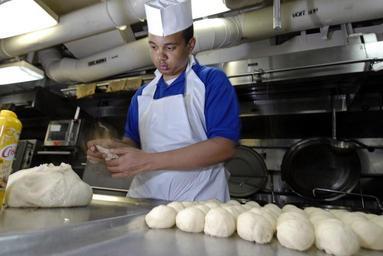 | Keywords: US Navy 080619-N-7883G-053 Culinary Specialist Seaman Alberto Guillen, of Perth Amboy, N.J., makes rolls in the bakeshop aboard the aircraft carrier USS Kitty Hawk (CV 63).jpg en PACIFIC OCEAN June 19 2008 Culinary Specialist Seaman Alberto Guillen of Perth Amboy N J makes rolls in the bakeshop aboard the aircraft carrier USS Kitty Hawk CV 63 Guillen bakes 200 rolls for the ship's crew every day The ship is returning to the United States for decommissioning after 47 years of service and will be replaced by USS George Washington CVN 73 this summer as the Navy's only carrier operating from Japan U S Navy photo by Mass Communication Specialist 3rd Class Kyle D Gahlau Released 2008-06-19 080619-N-7883G-053 Navy http //www navy mil/view_image asp id 60511 U S Navy photo by Mass Communication Specialist 3rd Class Kyle D Gahlau PD-USGov-Military-Navy Breadmaking Culinary specialist United States Navy Aboard USS George Washington CVN-73 |