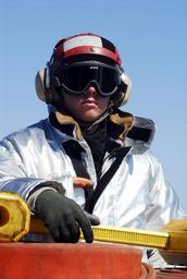 | Keywords: US Navy 080620-N-2610F-001 Aviation Boatswain's Mate Airman Patrick Dent observes flight operations while standing in a crash and salvage hot-suit-man watch on the flight deck aboard the Nimitz-class aircraft carrier USS John C.jpg en PACIFIC OCEAN June 20 2008 Aviation Boatswain's Mate Airman Patrick Dent observes flight operations while standing in a crash and salvage hot-suit-man watch on the flight deck aboard the Nimitz-class aircraft carrier USS John C Stennis CVN 74 Hot-suit men stand firefighting watches during flight operations in the event of an aircraft emergency Stennis and multiple embarked fleet replacement squadrons are conducting fleet replacement squadron carrier qualifications FRSCQ off the coast of Southern California FRSCQ's are conducted to qualify naval aviators in day and night carrier operations in the aircraft they will fly during their aviation career U S Navy photo by Mass Communication Specialist 2nd Class Elliott Fabrizio Released 2008-06-20 080620-N-2610F-001 Navy http //www navy mil/view_image asp id 60514 U S Navy photo by Mass Communication Specialist 2nd Class Elliott Fabrizio PD-USGov-Military-Navy Aviation Boatswain's Mates Aboard USS John C Stennis CVN-74 |