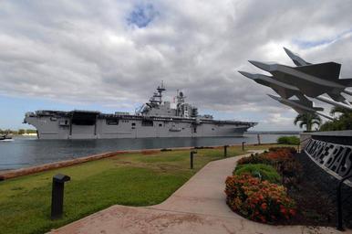 | Keywords: US Navy 080627-N-1974P-004 Sailors man the rails as the amphibious assault ship USS Bonhomme Richard (LHD 6) arrives at Naval Station Pearl Harbor for a scheduled port call before participating in the Rim of the Pacific (RIMPAC.jpg en PEARL HARBOR Hawaii June 27 2008 Sailors man the rails as the amphibious assault ship USS Bonhomme Richard LHD 6 arrives at Naval Station Pearl Harbor for a scheduled port call before participating in the Rim of the Pacific RIMPAC 2008 RIMPAC is the world's largest multinational exercise and is scheduled biennially by the U S Pacific Fleet Participants include the United States Australia Canada Chile Japan the Netherlands Peru Republic of Korea Singapore and the United Kingdom U S Navy photo by Mass Communications Specialist 2nd Class Walter Pels Released 2008-06-27 080627-N-1974P-004 Navy http //www navy mil/view_image asp id 60823 U S Navy photo PD-USGov-Military-Navy 2008 in Pearl Harbor USS Bonhomme Richard LHD-6 at Pearl Harbor Images from US Navy location Pearl Harbor Hawaii RIMPAC 2008 General views of USS Bonhomme Richard LHD-6 Manning the rail in the United States Navy |