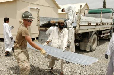 | Keywords: US Navy 080630-N-6477M-432 Builder 2nd Class Ian M. Seiler, assigned to Naval Mobile Construction Battalion (NMCB) 3 Det. 4, works with Afghani nationals to unload a shipment of sheet metal.jpg en FIRE BASE SALERNO Afghanistan June 30 2008 Builder 2nd Class Ian M Seiler assigned to Naval Mobile Construction Battalion NMCB 3 Det 4 works with Afghani nationals to unload a shipment of sheet metal to be used as roofing material on berthing spaces being built for Afghan military personnel at Fire Base Salerno The sub-detachment of Seabees is deployed to this area less than 50 miles from the border of Pakistan in support of International Security Assistance Force U S Navy photo by Mass Communication Specialist 2nd Class Eli J Medellin/Released 2008-06-30 080630-N-6477M-432 Navy http //www navy mil/view_image asp id 62111 U S Navy photo by Mass Communication Specialist 2nd Class Eli J Medellin PD-USGov-Military-Navy Fire Base Salerno Construction in Afghanistan United States Navy in the War in Afghanistan 2001-present Naval Mobile Construction Battalion 3 Men of Afghanistan Military people and civilians Men at work Trucks in Afghanistan Builder United States Navy Wagon rigid trucks |
