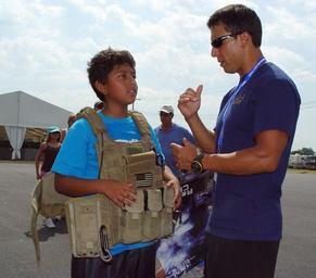 | Keywords: US Navy 080722-N-2888Q-007 Explosive Ordnance Technician Bobby Wood, right, talks with a young boy wearing an EOD 9 bomb disposal suit during Healthy Kids Day at the Delaware State Fair.jpg en HARRINGTON Del July 22 2008 Explosive Ordnance Technician Bobby Wood right talks with a young boy wearing an EOD 9 bomb disposal suit during Healthy Kids Day at the Delaware State Fair Wood assigned to Explosive Ordnance Disposal EOD Mobile Company MOB 12 is at the Fair participating in Delaware Navy Week U S Navy photo by Chief Mass Communication Specialist Lucy M Quinn/Released 2008-07-22 080722-N-2888Q-007 Navy http //www navy mil/view_image asp id 61873 U S Navy photo by Chief Mass Communication Specialist Lucy M Quinn PD-USGov-Military-Navy Delaware State Fair 2008 United States Navy Explosive Ordnance Disposal |