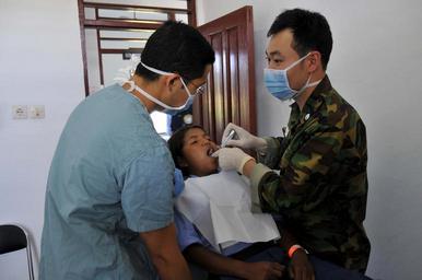 | Keywords: US Navy 080723-N-4128S-084 South Korean Navy Lt. Michael Sim and Brian Huh extract a patient's tooth.jpg en GLENO East Timor July 20 2008 South Korean Navy Lt Michael Sim right from Seoul Korea and Brian Huh a University of California San Diego pre-dental student from Santa Monica Calif extract a patient's tooth at a Pacific Partnership dental civic action project Pacific Partnership is a four-month deployment by Mercy to assist the governments of participating nations with medical dental and construction civic assistance programs U S Navy photo by Mass Communication Specialist 2nd Class Joseph Seavey/Released 2008-07-20 080723-N-4128S-084 Navy http //www navy mil/view_image asp id 61789 U S Navy photo by Mass Communication Specialist 2nd Class Joseph Seavey PD-USGov-Military-Navy Gleno United States Navy images from East Timor Naval officers of South Korea |