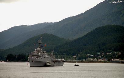 | Keywords: US Navy 080726-N-3483D-001 The amphibious transport dock USS Juneau (LPD 10) approaches the Coast Guard Station pier in Juneau, Alaska.jpg en JUNEAU Alaska July 26 2008 The amphibious transport dock USS Juneau LPD 10 approaches the Coast Guard Station pier in Juneau Alaska for a four-day visit as part of Alaska's 50th year of statehood celebration The ship will leave for San Diego where it scheduled to be deactivated U S Navy photo by Wes DeShano/Released 2008-07-26 080726-N-3483D-001 Navy http //www navy mil/view_image asp id 62199 U S Navy photo by Wes DeShano PD-USGov-Military-Navy Images from US Navy location JUNEAU Alaska General views of USS Juneau LPD-10 Coasts of Alaska |