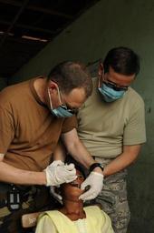 | Keywords: US Navy 080809-N-8907D-025 Navy Capt. Michael Ashe and Air Force Col. Dan Dupont, both assigned to the amphibious assault ship USS Kearsarge (LHD 3), perform a dental procedure on a Nicaraguan child.jpg en PUERTO CABEZAS Nicaragua Aug 12 2008 Navy Capt Michael Ashe and Air Force Col Dan Dupont both assigned to the amphibious assault ship USS Kearsarge LHD 3 perform a dental procedure on a Nicaraguan child at one of several medical sites set up in Puerto Cabezas during the Caribbean phase of Continuing Promise 2008 Kearsarge is deployed as the primary platform for the Caribbean phase of Continuing Promise an equal-partnership mission between the United States Canada the Netherlands Brazil Nicaragua Panama Colombia Dominican Republic Trinidad and Tobago and Guyana U S Navy photo by Mass Communication Specialist 3rd Class David Danals/Released 2008-08-12 080809-N-8907D-025 Navy http //www navy mil/view_image asp id 62431 U S Navy photo by Mass Communication Specialist 3rd Class David Danals PD-USGov-Military-Navy Images from US Navy location PUERTO CABEZAS Nicaragua Aboard USS Kearsarge LHD-3 |