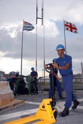 | Keywords: US Navy 080827-G-1103J-724 Petty Officer 3rd Class Kelly Moss uses a pallet jack to help offload humanitarian relief supplies from the flight deck of the U.S. Coast Guard Cutter Dallas (WHEC 716).jpg en BATUMI Georgia Aug 27 2008 Petty Officer 3rd Class Kelly Moss uses a pallet jack to help offload humanitarian relief supplies from the flight deck of the U S Coast Guard Cutter Dallas WHEC 716 Dallas delivered more than 76 000 pounds of humanitarian relief supplies to Georgia including diapers baby wipes food juice laundry detergent and personal hygiene items U S Coast Guard photo by Petty Officer 2nd Class Lauren Jorgensen/Released 2008-08-27 080827-G-1103J-724 Navy http //www navy mil/view_image asp id 63173 U S Coast Guard photo by Petty Officer 2nd Class Lauren Jorgensen PD-USGov-Military-Navy United States Navy in Batumi Aboard USS McFaul DDG-74 USCGC Dallas WHEC-716 |