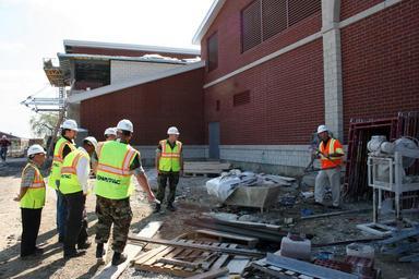 | Keywords: US Navy 080910-N-9876C-001 Naval Facilities Engineering Command (NAVFAC) supervisors review a barracks construction site.jpg en GREAT LAKES Ill Sept 10 2008 Naval Facilities Engineering Command NAVFAC supervisors review a barracks construction site on Recruit Training Command Great Lakes The site visit is part of a NAVFAC safety-training course to recognize safety and health hazards on job sites Due in part to effective oversight NAVFAC Midwest contractors have not suffered a lost-workday mishap during more than 1 5 million man-hours of work since 2005 U S Navy photo by Bill Couch/Released 2008-09-10 080910-N-9876C-001 Navy http //www navy mil/view_image asp id 64013 U S Navy photo by Bill Couch PD-USGov-Military-Navy Naval Station Great Lakes |
