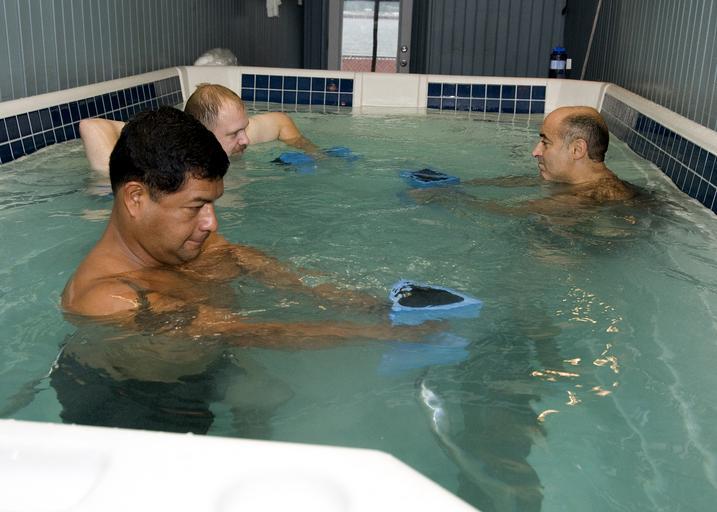 | Keywords: US Navy 080910-N-4500G-033 Special Warfare Combatant-craft Crewmen and support staff use small buoyant.jpg en NORFOLK Va Sept 10 2008 Special Warfare Combatant-craft Crewmen SWCC and support staff use small buoyant dumbbells in a hydrotherapy pool at Naval Special Warfare Group NSWG 4 to increase strength and range of motion in muscles and joints The pool is used as a therapy tool in conjunction with the Human Performance Initiative already in place at NSWG-4 designed to prevent and rehabilitate injuries caused by a special boat operator's daily duties U S Navy photo by Mass Communication Specialist 3rd Class Robyn Gerstenslager/Released 2008-09-10 080910-N-4500G-033 Navy http //www navy mil/view_image asp id 64143 U S Navy photo by Mass Communication Specialist 3rd Class Robyn Gerstenslager PD-USGov-Military-Navy Naval Station Norfolk Hydrotherapy Naval Special Warfare Group Four |