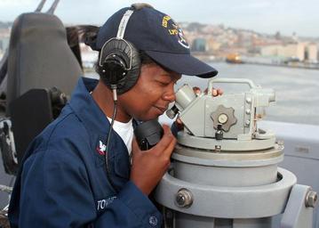 | Keywords: US Navy 080916-N-6764G-043 Quartermaster 3rd Class Atiya Townes stands port lookout watch aboard the amphibious transport dock ship USS San Antonio (LPD 17).jpg USS San Antonio LPD 17 San Antonio is deployed as part of the Iwo Jima Expeditionary Strike Group supporting maritime security operations in the U S 5th and 6th Fleet areas of responsibility U S Navy photo by Mass Communication Specialist 3rd Class Brian Goodwin/Released 2008-09-16 080916-N-6764G-043 Navy http //www navy mil/view_image asp id 64235 U S Navy photo by Mass Communication Specialist 3rd Class Brian Goodwin PD-USGov-Military-Navy Aboard USS San Antonio LPD 17 Quartermaster United States Navy Alidades Women in the United States Navy |