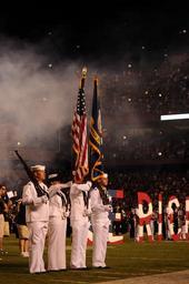| Keywords: US Navy 080920-N-2539L-099 An honor guard parades the colors.jpg en COLUMBIA S C Sept 20 2008 An honor guard parades the colors during the military appreciation ceremony during half time of the University of South Carolina USC football game against Wofford College Sailors from the Navy Individual Augmentee Combat Training Command at Fort Jackson the USC Navy Reserve Officer Training Corps Navy Recruiting District Raleigh and Naval Operational Support Center Columbia participated in the kick-off event for Columbia Navy Week 2008 Navy Weeks are designed to raise awareness in metropolitan areas that do not have a significant Navy presence U S Navy photo by Chief Mass Communication Specialist Hugh C Laughlin/Released 2008-09-20 080920-N-2539L-099 Navy http //www navy mil/view_image asp id 64438 U S Navy photo by Chief Mass Communication Specialist Hugh C Laughlin PD-USGov-Military-Navy Columbia South Carolina Honour guards from the United States Columbia Navy Week |