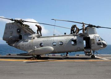 | Keywords: US Navy 081001-N-4856C-028 Marines perform maintenance on a CH-46 Sea Knight helicopter assigned to Marine Medium Helicopter Squadron (HMM) 264 aboard the multi-purpose amphibious assault ship USS Iwo Jima (LHD 7).jpg en INDIAN OCEAN Oct 1 2008 Marines perform maintenance on a CH-46 Sea Knight helicopter assigned to Marine Medium Helicopter Squadron HMM 264 aboard the multi-purpose amphibious assault ship USS Iwo Jima LHD 7 Iwo Jima is deployed as part of the Iwo Jima Expeditionary Strike Group supporting maritime security operations in the U S 5th Fleet area of responsibility U S Navy photo by Mass Communication Specialist Seaman Christopher L Clark/Released 2008-10-01 081001-N-4856C-028 Navy http //www navy mil/view_image asp id 64845 U S Navy photo by Mass Communication Specialist Seaman Christopher L Clark PD-USGov-Military-Navy CH-46 US Marine Corps Marine Medium Tiltrotor Squadron 264 Aboard USS Iwo Jima LHD-7 Marine Medium Helicopter Squadron 264 |