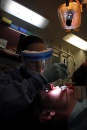 | Keywords: US Navy 081011-N-9610C-007 ospital Corpsman Dami-anne Boykin gives Aviation Electronics Technician 3rd Class Michael Morgan his yearly tooth cleaning.jpg en PACIFIC OCEAN Oct 11 2008 Hospital Corpsman Dami-anne Boykin from Carrollton Ga gives Aviation Electronics Technician 3rd Class Michael Morgan from Hart Mich his yearly tooth cleaning in health services department's dental office aboard the Nimitz-class aircraft carrier USS John C Stennis CVN 74 Stennis is conducting pre-deployment exercises off the coast of Southern California U S Navy photo by Mass Communication Specialist 3rd Class Dmitry Chepusov/Released 2008-10-11 081011-N-9610C-007 Navy http //www navy mil/view_image asp id 65282 U S Navy photo by Mass Communication Specialist 3rd Class Dmitry Chepusov PD-USGov-Military-Navy Aboard USS John C Stennis CVN-74 Hospital Corpsman Aviation Electronics Technician Face shields |