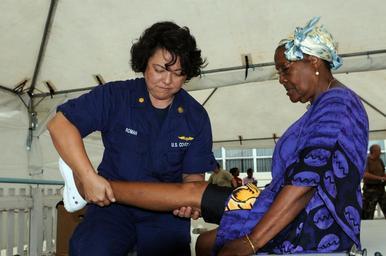 | Keywords: US Navy 081027-N-5642P-131 Coast Guard Lt. Cmdr. Kimberly Roman gives a Trinidadian woman an exam.jpg en COUVA Trinidad and Tobago Oct 27 2008 Coast Guard Lt Cmdr Kimberly Roman a general physician embarked aboard the amphibious assault ship USS Kearsarge LHD 3 gives a Trinidadian woman an exam at a local health facility during the humanitarian/civic assistance mission Continuing Promise CP 2008 Kearsarge is the primary platform for the Caribbean phase of CP an equal-partnership mission involving the United States Canada the Netherlands Brazil Nicaragua Colombia Dominican Republic Trinidad and Tobago and Guyana U S Navy photo by Mass Communication Specialist 3rd Class William S Parker/Released 2008-10-27 081027-N-5642P-131 Navy http //www navy mil/view_image asp id 65890 U S Navy photo by Mass Communication Specialist 3rd Class William S Parker PD-USGov-Military-Navy Images from US Navy location COUVA Trinidad and Tobago |