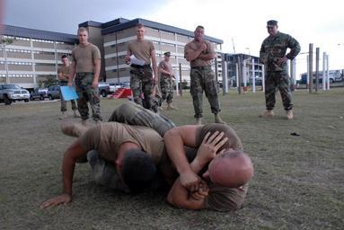 | Keywords: US Navy 081106-N-1057H-215 CM2 Aaron Wymore, Marine Corps Mixed Martial Arts Program (MCMAP) instructor for NMCB-11, grapples with EO3 Elliot Bunek, an MCMAP student from NMCB 74, during the training's final evolution while oth.jpg en GULFPORT Miss Nov 6 2008 Construction Mechanic 2nd Class Aaron Wymore Marine Corps Mixed Martial Arts Program MCMAP instructor for Naval Mobile Construction Battalion NMCB 11 grapples with Equipment Operator 3rd Class Elliot Bunek an MCMAP student from NMCB 74 during the training's final evolution while other students and instructors watch U S Navy photo by Mass Communication Specialist 2nd Class Erick S Holmes/Released 2008-11-06 081106-N-1057H-215 Navy http //www navy mil/view_image asp id 66497 U S Navy photo by Mass Communication Specialist 2nd Class Erick S Holmes PD-USGov-Military-Navy Images from US Navy location Gulfport Miss |