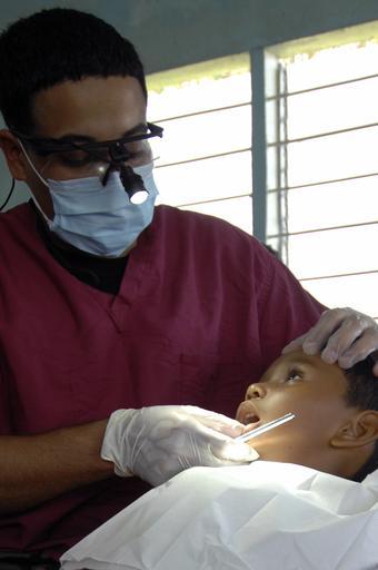 Keywords: US Navy 081110-N-1508S-101 U.S. Public Health Service Lt. Cmdr. Robert Reyes provides dental care to a Guyanese child at a medical clinic.jpg en MABARUMA Guyana Nov 10 2008 U S Public Health Service Lt Cmdr Robert Reyes a dentist embarked aboard the amphibious assault ship USS Kearsarge LHD 3 provides dental care to a Guyanese child at a medical clinic set up at the Mabaruma Library during the humanitarian/civic assistance mission Continuing Promise CP 2008 Kearsarge is supporting the Caribbean phase of CP 2008 an equal-partnership mission between the United States Canada the Netherlands Brazil Nicaragua Colombia Dominican Republic Trinidad and Tobago and Guyana U S Navy photo by Mass Communication Specialist Seaman Ernest Scott/Released 2008-11-10 081110-N-1508S-101 Navy http //www navy mil/view_image asp id 66329 U S Navy photo by Mass Communication Specialist Seaman Ernest Scott PD-USGov-Military-Navy Images from US Navy location Mabaruma Guyana