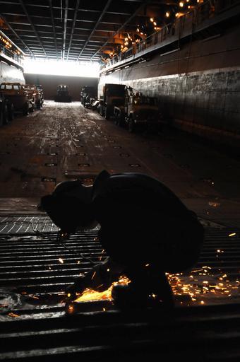 | Keywords: US Navy 081111-N-8907D-231 Hull technician Fireman Matt Tully, assigned to the amphibious assault ship USS Kearsarge (LHD 3), repairs the ramp leading to the well deck.jpg en ATLANTIC OCEAN Nov 11 2008 Hull technician Fireman Matt Tully assigned to the amphibious assault ship USS Kearsarge LHD 3 repairs the ramp leading to the well deck Kearsarge is supporting the Caribbean Phase of the humanitarian and civic assistance mission Continuing Promise 2008 an equal partnership mission between the United States Canada the Netherlands Brazil Nicaragua Colombia Dominican Republic Trinidad and Tobago and Guyana U S Navy photo by Mass Communication Specialist 3rd Class David Danals/Released 2008-11-11 081111-N-8907D-231 Navy http //www navy mil/view_image asp id 66433 U S Navy photo by Mass Communication Specialist 3rd Class David Danals PD-USGov-Military-Navy Aboard USS Kearsarge LHD-3 Well decks |