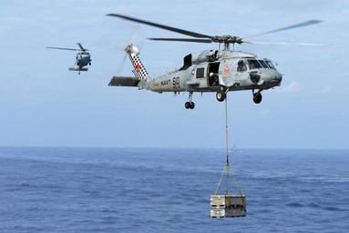 | Keywords: US Navy 081114-N-9132C-154 An aircrewman looks down from a SH-60F Sea Hawk.jpg en PACIFIC OCEAN Nov 14 2008 An aircrewman assigned to Helicopter Anti-Submarine Squadron HS 4 looks down from a SH-60F Sea Hawk as it carries ammunition during an ammo offload aboard the Nimitz-class aircraft carrier USS Ronald Reagan CVN 76 Ronald Reagan is on a routine deployment currently operating in the U S 3rd Fleet area of responsibility U S Navy photo by Mass Communication Specialist Seaman Apprentice Oliver Cole/Released 2008-11-14 081114-N-9132C-154 Navy http //www navy mil/view_image asp id 66587 U S Navy photo by Mass Communication Specialist Seaman Apprentice Oliver Cole PD-USGov-Military-Navy Helicopters at USS Ronald Reagan CVN-76 SH-60F Oceanhawk Helihoisting of cargo |