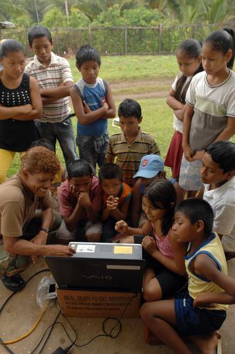 | Keywords: US Navy 081116-N-7544A-093 Lt. Carmen Harmon, a Navy nurse embarked aboard the amphibious assault ship USS Kearsarge (LHD 3), shares a computer game with children.jpg en SANTA ROSA Guyana Nov 16 2008 Lt Carmen Harmon a Navy nurse embarked aboard the amphibious assault ship USS Kearsarge LHD 3 shares a computer game with children at a medical civil assistance project in Santa Rosa during the humanitarian and civic assistance mission Continuing Promise 2008 Kearsarge is the primary platform supporting the Caribbean phase of Continuing Promise an equal partnership mission between the United States Canada the Netherlands Brazil Nicaragua Colombia Dominican Republic Trinidad and Tobago and Guyana U S Navy photo by Mass Communication Specialist 3rd Class Maddelin Angebrand/Released 2008-11-16 081116-N-7544A-093 Navy http //www navy mil/view_image asp id 66554 U S Navy photo by Mass Communication Specialist 3rd Class Maddelin Angebrand PD-USGov-Military-Navy People of Guyana Aboard USS Kearsarge LHD-3 |