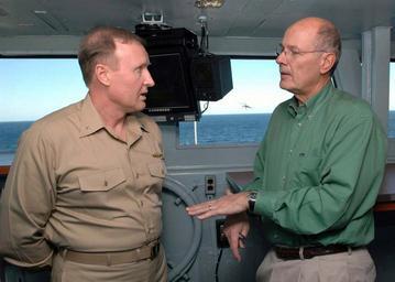 | Keywords: US Navy 081120-N-8822R-003 CBS News anchor Harry Smith converses with RADM Frank Pandolfe.jpg CBS News anchor Harry Smith converses with RADM Frank Pandolfe commander Carrier Strike Group CSG 2 in the Flag Bridge aboard the Nimitz-class aircraft carrier w USS Theodore Roosevelt CVN 71 Smith along with CBS media crew are embarked aboard the ship to perform a live news broadcast Theodore Roosevelt and embarked Carrier Air Wing CVW 8 are on deployment in the U S 5th Fleet area of responsibility and are focused on reassuring regional partners of the United States commitment to security which promotes stability and global prosperity U S Navy photo by Mass Communication Specialist 3rd Class Antwjuan Richards-Jamison/Released 2008-11-20 081120-N-8822R-003 Navy http //www navy mil/view_image asp id 66806 U S Navy photo by Mass Communication Specialist 3rd Class Antwjuan Richards-Jamison PD-USGov-Military-Navy Photographs taken on 2008-11-20 Gulf of Oman Aboard USS Theodore Roosevelt CVN-71 Images from US Navy location Gulf of Oman Harry Smith television reporter Rear Admirals Ship captains Frank Craig Pandolfe |