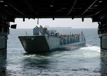 | Keywords: US Navy 090203-N-1655H-047 A landing craft utility motors out of the well deck of USS Nashville (LPD 13).jpg en ATLANTIC OCEAN Feb 3 2009 A landing craft utility motors out of the well deck of the amphibious transport dock ship USS Nashville LPD 13 transporting Marines and Seabees participating in Africa Partnership Station APS 2009 Nashville is deployed as a part of APS 2009 an international initiative developed by Naval Forces Europe and Naval Forces Africa which aims to work cooperatively with U S and international partners to improve maritime safety and security in West and Central Africa U S Navy photo by Mass Communication Specialist 2nd Class David Holmes/Released 2009-02-03 090203-N-1655H-047 Navy http //www navy mil/view_image asp id 68547 U S Navy photo by Mass Communication Specialist 2nd Class David Holmes PD-USGov-Military-Navy Aboard USS Nashville LPD-13 LCU 1658 ship 1970 Well decks Africa Partnership Station 2009 |