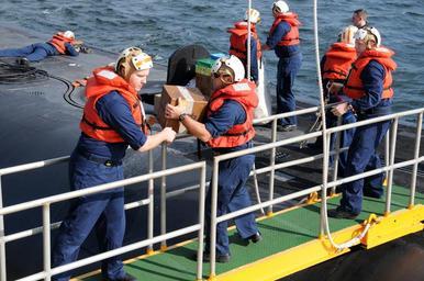 Keywords: US Navy 090215-N-3737T-114 Crewmembers load fresh produce and other supplies during an underway replenishment.jpg en ATLANTIC OCEAN Feb 15 2009 Crewmembers assigned to the Gold crew of the ballistic missile submarine USS Maryland SSBN 738 load fresh produce and other supplies during an underway replenishment U S Navy photo/Released 2009-02-15 090215-N-3737T-114 Navy http //www navy mil/view_image asp id 69146 U S Navy photo PD-USGov-Military-Navy USS Maryland SSBN-738 Underway replenishment