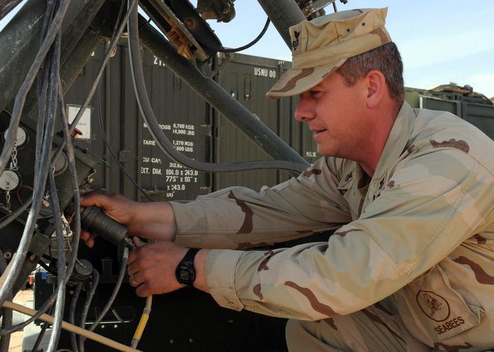 Keywords: US Navy 090217-N-1120L-005 Information Systems Technician 1st Class Alan Decker, assigned to Naval Mobile Construction Battalion (NMCB) 7, inserts a cord into the transmitter dish of a Ruggedized Deployable Satellite Communicat.jpg en HELMAND PROVINCE Afghanistan Feb 17 2009 Information Systems Technician 1st Class Alan Decker assigned to Naval Mobile Construction Battalion NMCB 7 inserts a cord into the transmitter dish of a Ruggedized Deployable Satellite Communications RDSAT system while performing routine maintenance checks The RDSAT system is a deployable asset that allows a battalion to effectively communicate with email and phone services even when deployed to remote areas This is the first time the RDSAT has been deployed with a Seabee battalion NMCB 7 is deployed to Afghanistan providing contingency construction support to Alliance forces supporting the NATO International Security Assistance Force U S Navy photo by Mass Communication Specialist 2nd Class Michael B Lavender/Released 2009-02-17 090217-N-1120L-005 Navy http //www navy mil/view_image asp id 69268 U S Navy photo by Mass Communication Specialist 2nd Class Michael B Lavender PD-USGov-Military-Navy Helmand Province in the War in Afghanistan 2001-present Information Systems Technician United States Navy