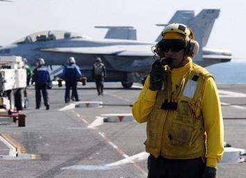 | Keywords: US Navy 090220-N-3610L-315 Aviation Boatswain's Mate 3rd Class Leonel Polanco readies an aircraft handling team to reposition a C-2A Greyhound.jpg en PACIFIC OCEAN Feb 20 2009 Aviation Boatswain's Mate 3rd Class Leonel Polanco readies an aircraft handling team to reposition a C-2A Greyhound during flight operations on the flight deck of Nimitz-class aircraft carrier USS Ronald Reagan CVN 76 Ronald Reagan is conducting fleet replacement squadron carrier qualification U S Navy photo by Mass Communication Specialist 3rd Class Torrey W Lee/Released 2009-02-20 090220-N-3610L-315 Navy http //www navy mil/view_image asp id 69018 U S Navy photo by Mass Communication Specialist 3rd Class Torrey W Lee PD-USGov-Military-Navy Aviation Boatswain's Mates Aboard USS Ronald Reagan CVN-76 |