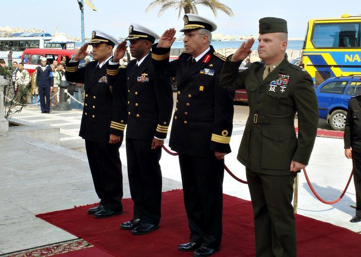 | Keywords: US Navy 090223-N-1907H-004 Distinguished visitors render salutes as part of a wreath laying ceremony at the Unknown Soldier Monument in Alexandria, Egypt.jpg en ALEXANDRIA Egypt Feb 23 2009 Cmdr Jose Velacruz left naval attach; Cmdr Eric Cash commanding officer of the amphibious transport dock ship USS San Antonio LPD 17 ; Egyptian Cmdr Ghanem Tarek deputy commander Alexandria Naval Base; and Lt Col John Giltz commanding officer of 26th Marine Expeditionary Unit 26 MEU render salutes as part of a wreath laying ceremony at the Unknown Soldier Monument in Alexandria Egypt San Antonio is in Alexandria to commemorate the 100th anniversary of The Great White Fleet a historic U S goodwill voyage around the world U S Navy photo by Lieutenant Charity C Hardison/Released 2009-02-23 090223-N-1907H-004 Navy http //www navy mil/view_image asp id 69107 U S Navy photo by Lieutenant Charity C Hardison PD-USGov-Military-Navy USS San Antonio LPD-17 in Alexandria Ismail Monument Alexandria |
