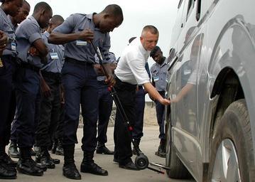 | Keywords: US Navy 090226-N-1655H-150 Chief Master-at-Arms Clarence O'Dell, explains proper vehicle search procedures to Ghanaian Sailors during an Africa Partnership Station port security training exercise.jpg en SEKONDI Ghana Feb 26 2009 Chief Master-at-Arms Clarence O'Dell assigned to the Naval Criminal Investigative Service Security Training Assistance Assessment Team explains proper vehicle search procedures to Ghanaian Sailors during an Africa Partnership Station port security training exercise O'Dell is an instructor embarked aboard the amphibious transport dock ship USS Nashville LPD 13 deployed as part of Africa Partnership Station an international initiative developed by Naval Forces Europe and Naval Forces Africa which aims to work cooperatively with U S and international partners to improve maritime safety and security for the continent of Africa U S Navy photo by Mass Communication Specialist 2nd Class David Holmes/Released 2009-02-26 090226-N-1655H-150 Navy http //www navy mil/view_image asp id 69123 U S Navy photo by Mass Communication Specialist 2nd Class David Holmes PD-USGov-Military-Navy United States Navy in Ghana 2009 Aboard USS Nashville LPD-13 Master-at-arms Vehicle inspection mirrors Naval Criminal Investigative Service United States Navy in Sekondi-Takoradi Africa Partnership Station 2009 |