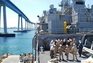 | Keywords: US Navy 090324-N-5617R-036 Service members and non-governmental organization personnel cross the brow to start a tour and familiarize themselves to the ship spaces aboard the amphibious transport dock ship USS Dubuque (LPD 8).jpg en SAN DIEGO March 24 2009 Service members and non-governmental organization personnel cross the brow to start a tour and familiarize themselves to the ship spaces aboard the amphibious transport dock ship USS Dubuque LPD 8 during the Pacific Partnership 2009 conference Pacific Partnership 2009 will be the fourth in a series of annual U S Pacific Fleet humanitarian and civic assistance missions for Commander U S Pacific Fleet Dubuque will embark humanitarian civic assistance equipment and a robust multi-specialized team of preventive medicine personnel veterinarians medical and dental teams a construction battalion and engineering personnel U S Navy photo by Mass Communication Specialist 3rd Class Rialyn Rodrigo/Released 2009-03-24 090324-N-5617R-036 Navy http //www navy mil/view_image asp id 69978 U S Navy photo by Mass Communication Specialist 3rd Class Rialyn Rodrigo PD-USGov-Military-Navy Pacific Partnership 2009 USS Dubuque LPD-8 San Diego-Coronado Bridge |