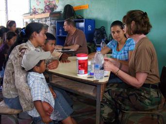 | Keywords: US Navy 090401-N-1580K-562 Navy nurse Capt. Anne White and Honduran translator Sheila Garcia explain medical procedures to villagers from Aguacatal during the Beyond the Horizon humanitarian assistance exercise in Honduras.jpg en AGUACATAL Honduras April 1 2009 Navy nurse Capt Anne White and Honduran translator Sheila Garcia explain medical procedures to villagers from Aguacatal during the Beyond the Horizon humanitarian assistance exercise in Honduras Reserve component doctors nurses and hospital corpsmen from Operational Hospital Support Unit Dallas are providing medical services to six different Honduran villages during the two weeks exercise U S Navy photo by Mass Communication Specialist 2nd Class Ron Kuzlik/Released 2009-04-01 090401-N-1580K-562 Navy http //www navy mil/view_image asp id 70377 U S Navy photo by Mass Communication Specialist 2nd Class Ron Kuzlik PD-USGov-Military-Navy Images from US Navy location AGUACATAL Honduras |
