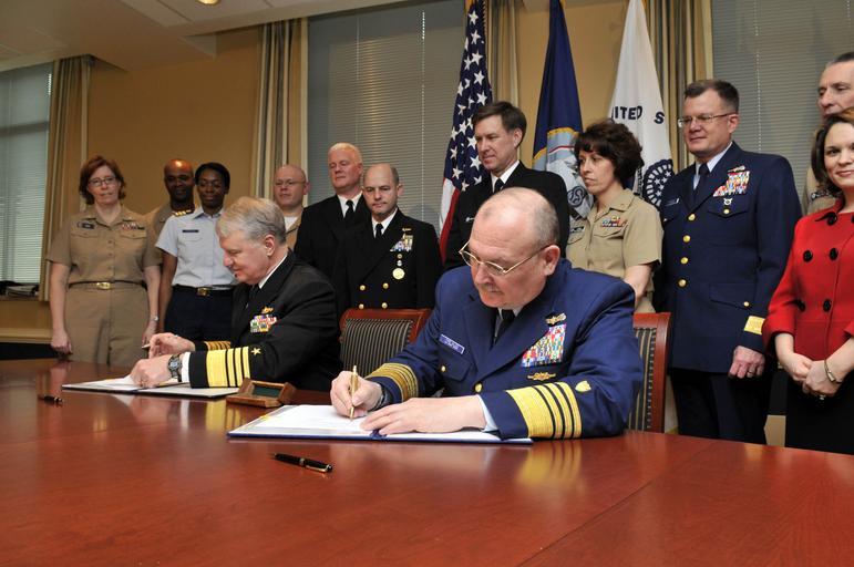 | Keywords: US Navy 090401-N-8273J-014 Chief of Naval Operations (CNO) Adm. Gary Roughead, left, and Commandant of the Coast Guard Adm. Thad W. Allen sign a memorandum of agreement for the Safe Harbor program during a signing ceremony at t.jpg  en WASHINGTON April 1 2009 Chief of Naval Operations CNO Adm Gary Roughead left and Commandant of the Coast Guard Adm Thad W Allen sign a memorandum of agreement for the Safe Harbor program during a signing ceremony at the Pentagon The agreement reflects the Navy and Coast Guard's commitment to providing a lifetime of individually tailored coordinated non-medical care to seriously wounded ill or injured service members and their families U S Navy photo by Mass Communication 1st Class Tiffini M Jones/Released 2009-04-01 090401-N-8273J-014 Navy http //www navy mil/view_image asp id 70232 U S Navy photo by Mass Communication 1st Class Tiffini M Jones PD-USGov-Military-Navy Interior of The Pentagon Gary Roughead in 2009 |