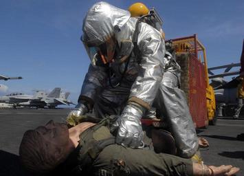 | Keywords: US Navy 090404-N-2610F-043 Aviation Boatswain's Mate (Handling) Airman Drew Hixon, from Phoenix, rescues a training dummy during a simulated aircraft fire aboard the Nimitz-class aircraft carrier USS John C. Stennis (CVN 74).jpg en PACIFIC OCEAN April 4 2009 Aviation Boatswain's Mate Handling Airman Drew Hixon from Phoenix rescues a training dummy during a simulated aircraft fire aboard the Nimitz-class aircraft carrier USS John C Stennis CVN 74 John C Stennis is on a scheduled six-month deployment to the western Pacific Ocean U S Navy photo by Mass Communication Specialist 2nd Class Elliott Fabrizio/Released 2009-04-04 090404-N-2610F-043 Navy http //www navy mil/view_image asp id 70318 U S Navy photo by Mass Communication Specialist 2nd Class Elliott Fabrizio PD-USGov-Military-Navy Taken with Nikon D200 Images from US Navy location PACIFIC OCEAN USS John C Stennis CVN-74 flight deck Aviation Boatswain's Mates Handlers Fire proximity suits Oscars dummy |
