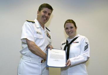 | Keywords: US Navy 090415-N-5319A-007 Mass Communication Specialist Seaman Kathleen O'Keefe is congratulated by the Rear Adm. Frank Thorp, Chief of Information, during her graduation ceremony at the Defense Information School at Ft. Georg.jpg en FORT MEADE Md April 15 2009 Mass Communication Specialist Seaman Kathleen O'Keefe is congratulated by the Rear Adm Frank Thorp Chief of Information during her graduation ceremony at the Defense Information School at Ft George G Meade O'Keefe is the first Defense Information School graduate to receive the Bobby McRill Award for outstanding performance at Defense Information School McRill was killed in combat in Iraq in 2007 and the McRill Award has been created in his honor to be presented to the Mass Communication Specialist who best displays the Navy's core values of honor courage and commitment U S Navy photo by Mass Communication Specialist 1st Class Brien Aho/Released 2009-04-15 090415-N-5319A-007 Navy http //www navy mil/view_image asp id 70602 U S Navy photo by Mass Communication Specialist 1st Class Brien Aho PD-USGov-Military-Navy Fort Meade Mass Communication Specialist Women in the United States Navy |