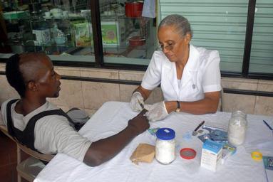 | Keywords: US Navy 090514-N-9318F-010 A registered nurse from the Antigua and Barbuda Nurses Association checks the blood sugar level of a patient at a free health screening during a Continuing Promise 2009 medical community service proje.jpg en ST JOHN'S Antigua May 14 2009 A registered nurse from the Antigua and Barbuda Nurses Association checks the blood sugar level of a patient at a free health screening during a Continuing Promise 2009 medical community service project Continuing Promise is a four-month humanitarian and civic assistance mission to Latin America and the Caribbean U S Navy photo by Mass Communication Specialist 1st Class Brian Finney/Released 2009-05-14 090514-N-9318F-010 Navy http //www navy mil/view_image asp id 71751 U S Navy photo by Mass Communication Specialist 1st Class Brian Finney PD-USGov-Military-Navy Images from US Navy location St John's Antigua |