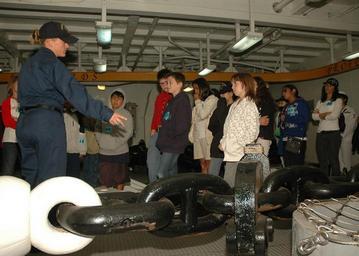| Keywords: US Navy 090515-N-7451A-001 Boatswain Mate 2nd Class Ashley Bevan explains the anchor chain to a group of students from Gerald R. Ford Elementary School in the forecastle of the amphibious assault ship USS Bonhomme Richard (LHD.jpg en SAN DIEGO May 15 2009 Boatswain Mate 2nd Class Ashley Bevan explains the anchor chain to a group of students from Gerald R Ford Elementary School in the forecastle of the amphibious assault ship USS Bonhomme Richard LHD 6 during a ship tour For more than 10 years the fifth grade students from Gerald R Ford have annually toured Bonhomme Richard as part of a triangular adoption partnership that also includes the city of Indian Wells U S Navy photo Mass Communication Specialist 2 Class Drew Williams/Released 2009-05-15 090515-N-7451A-001 Navy http //www navy mil/view_image asp id 71828 U S Navy photo Mass Communication Specialist 2 Class Drew Williams PD-USGov-Military-Navy Naval Base San Diego in the 2000s Aboard USS Bonhomme Richard LHD-6 Anchor chains |
