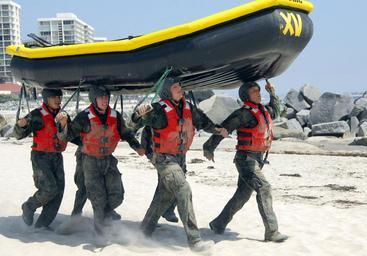 | Keywords: US Navy 090527-N-4301H-006 First-phase Basic Underwater Demolition-SEAL (BUD-s) candidates balance a small inflatable boat on their heads while heading toward the Pacific Ocean.jpg en Coronado Calif May 27 2009 First-phase Basic Underwater Demolition/SEAL BUD/s candidates balance a small inflatable boat on their heads while heading toward the Pacific Ocean First phase is an eight-week course that trains prepares and examines candidatesí abilities in physical conditioning; water competency; mental tenacity and team work U S Navy photo by Mass Communication Specialist 2nd Class Shauntae Hinkle-Lymas/Released 2009-05-27 090527-N-4301H-006 Navy http //www navy mil/view_image asp id 72087 U S Navy photo by Mass Communication Specialist 2nd Class Shauntae Hinkle-Lymas PD-USGov-Military-Navy Balancing or carrying objects on the head Basic Underwater Demolitions/SEAL Naval Special Warfare Center Small boats Headcarrying in the United States |