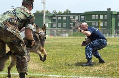 | Keywords: US Navy 090528-N-9552I-121 Master-at-Arms 3rd Class Ryan Canada releases his military working dog at Master-at-Arms 2nd Class Robert Calabro during a joint K-9 unit training exercise at Naval Air Station Sigonella.jpg en SIGONELLA Sicily May 28 2009 Master-at-Arms 3rd Class Ryan Canada releases his military working dog at Master-at-Arms 2nd Class Robert Calabro during a joint K-9 unit training exercise at Naval Air Station Sigonella The exercise hosted by the NAS Sigonella Security Department offered a chance for U S Navy personnel and local Sicilian K-9 units to share training techniques with their respective counterparts U S Navy photo by Mass Communication Specialist 3rd Class Jonathan P Idle/Released 2009-05-28 090528-N-9552I-121 Navy http //www navy mil/view_image asp id 72309 U S Navy photo by Mass Communication Specialist 3rd Class Jonathan P Idle PD-USGov-Military-Navy Naval Air Station Sigonella Master-at-arms Military working dogs of the United States |