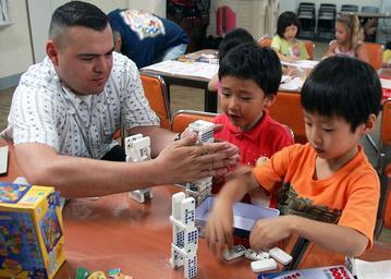 | Keywords: US Navy 090624-N-9573A-021 Equipment Operator 1st Class Mario Gonzalez, from Los Angeles, stacks dominos with children from the Hye Sim Won Orphanage in Seoul.jpg en SEOUL Republic Of Korea June 24 2009 Equipment Operator 1st Class Mario Gonzalez from Los Angeles stacks dominos with children from the Hye Sim Won Orphanage in Seoul Sailors stationed at Commander U S Naval Forces Korea visit the orphanage every month to celebrate an orphan's birthday with pizza cake and games U S Navy photo by Mass Communication Specialist 1st Class Bobbie G Attaway/Released 2009-06-24 090624-N-9573A-021 Navy http //www navy mil/view_image asp id 73237 U S Navy photo by Mass Communication Specialist 1st Class Bobbie G Attaway PD-USGov-Military-Navy Images from US Navy location SEOUL Republic of Korea Equipment Operator United States Navy |