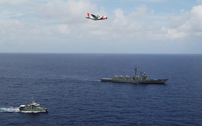 Keywords: US Navy 090625-G-0314D-002 A U.S. Coast Guard Air Station Barbers Point C-130 crew flies over USS Crommelin (FFG 37), homeported in Pearl Harbor, Hawaii, and the FSS Independence, a patrol boat from the Federated States of Micr.jpg en PACIFIC OCEAN June 25 2009 A U S Coast Guard Air Station Barbers Point C-130 crew flies over USS Crommelin FFG 37 homeported in Pearl Harbor Hawaii and the FSS Independence a patrol boat from the Federated States of Micronesia patroling the Western Pacific Ocean Both the Coast Guard and Navy have shared goals of protecting the fragile ecosystems of Oceania as well as enforcing maritime laws throughout mutual areas of responsibility U S Coast Guard photo by Petty Officer 3rd Class Michael De Nyse/Released 2009-06-25 090625-G-0314D-002 Navy http //www navy mil/view_image asp id 73410 U S Coast Guard photo by Petty Officer 3rd Class Michael De Nyse PD-USGov-Military-Navy USS Crommelin FFG-37 C-130 Hercules United States Coast Guard Images from US Navy location PACIFIC OCEAN |