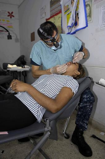 Keywords: US Navy 090711-F-7923S-120 Lt. Cmdr. Jeffrey Lowe, a Navy dentist embarked aboard the Military Sealift Command hospital ship USNS Comfort (T-AH 20), cleans a patient's teeth during a Continuing Promise 2009 medical service proj.jpg en CORINTO Nicaragua July 11 2009 Lt Cmdr Jeffrey Lowe a Navy dentist embarked aboard the Military Sealift Command hospital ship USNS Comfort T-AH 20 cleans a patient's teeth during a Continuing Promise 2009 medical service project at the Centro de Salud clinic Comfort is deployed on the Continuing Promise 2009 four-month humanitarian and civic assistance mission to Latin America and the Caribbean region U S Air Force photo by Airman 1st Class Benjamin Stratton/Released 2009-07-11 090711-F-7923S-120 Navy http //www navy mil/view_image asp id 73741 U S Air Force photo by Airman 1st Class Benjamin Stratton PD-USGov-Military-Navy Corinto Nicaragua Images from US Navy location CORINTO Nicaragua Aboard USNS Comfort T-AH-20