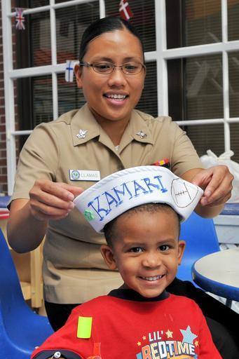 | Keywords: US Navy 090727-N-1783P-001 Hospital Corpsman 2nd Class Reneline Llamas, assigned to Naval Health Clinic Charleston, places a decorated white Sailor's hat on a 4-year-old patient.jpg en CHARLESTON S C July 27 2009 Hospital Corpsman 2nd Class Reneline Llamas assigned to Naval Health Clinic Charleston places a decorated white Sailor's hat on a 4-year-old patient undergoing treatment at the Medical University of South Carolina Children's Hospital Llamas is working with Operation White Hat a Navy volunteer program to enhance the lives of patients at the hospital U S Navy photo by Machinist's Mate 3rd Class Juan Pinalez/Released 2009-07-27 090727-N-1783P-001 Navy http //www navy mil/view_image asp id 74574 U S Navy photo by Machinist's Mate 3rd Class Juan Pinalez PD-USGov-Military-Navy Images from US Navy location Charleston S C |