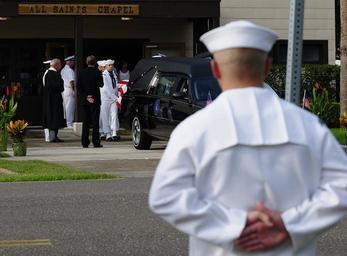 | Keywords: US Navy 090814-N-1644C-001 The Sailors of Naval Air Station Jacksonville gave their final salute to Navy Captain Michael Scott Speicher in front of All Saints Chapel.jpg en JACKSONVILLE Fla Aug 14 2009 The Sailors of Naval Air Station Jacksonville gave their final salute to Navy Captain Michael Scott Speicher in front of All Saints Chapel Speicher was killed when his F/A-18 Hornet was shot down over Anbar province Iraq on the first day of offensive operations during Desert Storm on Jan 17 1991 Here they move his flag-draped casket from the chapel to a waiting hearse U S Navy photo by Chief Mass Communication Specialist Anthony C Casullo/Released 2009-08-14 090814-N-1644C-001 Navy http //www navy mil/view_image asp id 75160 U S Navy photo by Chief Mass Communication Specialist Anthony C Casullo PD-USGov-Military-Navy 2009 at Naval Air Station Jacksonville Photographs by Anthony Casullo |