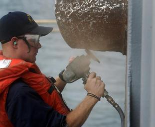 Keywords: US Navy 090817-N-7280V-455 Culinary Specialist Seaman James Brown, assigned to the amphibious command ship USS Blue Ridge (LCC 19), preserves an exhaust pipe on the side of the ship while in Korea.jpg en BUSAN Republic of Korea Aug 17 2009 Culinary Specialist Seaman James Brown assigned to the amphibious command ship USS Blue Ridge LCC 19 preserves an exhaust pipe on the side of the ship while in Korea Blue Ridge is the flagship for Commander U S 7th Fleet U S Navy photo by Mass Communication Specialist 3rd Class Daniel Viramontes /Released 2009-08-17 090817-N-7280V-455 Navy http //www navy mil/view_image asp id 75254 U S Navy photo by Mass Communication Specialist 3rd Class Daniel Viramontes PD-USGov-Military-Navy Culinary specialist United States Navy Images from US Navy location BUSAN Korea Aboard USS Blue Ridge LCC-19
