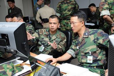 | Keywords: US Navy 090817-N-5086M-008 U.S. Navy Lt. Cmdr. Jason Nunez, left, and Republic of Korea Navy Lt. Cmdr. Kim Dae-ik work as part of the Naval Operations Coordination Team during Ulchi Freedom Guardian 2009.jpg en BUSAN Republic of Korea Aug 17 2009 U S Navy Lt Cmdr Jason Nunez left and Republic of Korea Navy Lt Cmdr Kim Dae-ik work as part of the Naval Operations Coordination Team during Ulchi Freedom Guardian 2009 Ulchi Freedom Guardian is an annual computer simulation-driven exercise to improve Republic of Korea and U S interoperability U S Navy photo by Mass Communication Specialist 2nd Class Greg Mitchell/Released 2009-08-17 090817-N-5086M-008 Navy http //www navy mil/view_image asp id 75227 U S Navy photo by Mass Communication Specialist 2nd Class Greg Mitchell PD-USGov-Military-Navy Images from US Navy location BUSAN Korea Naval officers of South Korea Ulchi Freedom Guardian 2009 Naval officers of the United States |