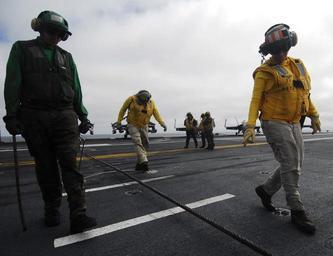 | Keywords: US Navy 090919-N-6538W-034 Lt. Jessica Parker, from St. Louis, Mo., and Aviation Boatswain's Mate (Equipment) Airman Recruit Kevin Starr, from Fayetteville, Ark., inspect the integrity of a cross-deck pendant.jpg en PACIFIC OCEAN Sept 19 2009 Lt Jessica Parker from St Louis Mo and Aviation Boatswain's Mate Equipment Airman Recruit Kevin Starr from Fayetteville Ark inspect the integrity of a cross-deck pendant on the flight deck aboard the aircraft carrier USS John C Stennis CVN 74 John C Stennis is underway conducting fleet replacement squadron carrier qualifications U S Navy photo by Mass Communication Specialist 3rd Class Walter M Wayman/Released 2009-09-19 090919-N-6538W-034 Navy http //www navy mil/view_image asp id 76369 U S Navy photo by Mass Communication Specialist 3rd Class Walter M Wayman PD-USGov-Military-Navy Aviation Boatswain's Mates Aboard USS John C Stennis CVN-74 |