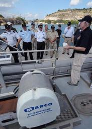 | Keywords: US Navy 090922-N-6138K-591 During an oil spill preparedness course, Paul Cronenberger, spill response manager at Naval Support Activity Souda Bay, explains the proper procedures when using the inclined belt plane.jpg en SOUDA BAY Greece Sept 22 2009 During an oil spill preparedness course Paul Cronenberger spill response manager at Naval Support Activity Souda Bay explains the proper procedures when using the inclined belt plane on the fast response skimmer as part of Eurasia Partnership Capstone 2009 EPC 09 EPC is an annual conference hosted by the U S Navy where military and civilian personnel participate in non-formal workshops and seminars aimed to increase maritime safety and security Nations participating include Azerbaijan Bulgaria Georgia Greece Kazakhstan Latvia Lithuania Norway Poland Ukraine and the United States U S Navy photo by Mass Communication Specialist 1st Class Gary Keen/Released 2009-09-22 090922-N-6138K-591 Navy http //www navy mil/view_image asp id 76509 U S Navy photo by Mass Communication Specialist 1st Class Gary Keen PD-USGov-Military-Navy Naval Support Activity Souda Bay |