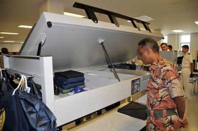 | Keywords: US Navy 090925-N-8848T-696 Lt. Col. Saif Said Al Hajri, from the Sultan's Armed Forces of Oman, looks into the locker of a recruit's rack in a barracks at Recruit Training Command.jpg en GREAT LAKES Ill Sept 25 2009 Lt Col Saif Said Al Hajri from the Sultan's Armed Forces of Oman looks into the locker of a recruit's rack in a barracks at Recruit Training Command Al-Hajri is part of the Corps of Foreign Naval Attaches visiting Recruit Training Command and Training Support Center U S Navy photo by Scott A Thornbloom/Released 2009-09-25 090925-N-8848T-696 Navy http //www navy mil/view_image asp id 76764 U S Navy photo by Scott A Thornbloom PD-USGov-Military-Navy Recruit Training Command Great Lakes Illinois |
