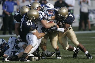 | Keywords: US Navy 091003-N-3404S-129 U.S. Naval Academy Midshipmen stop U.S. Air Force Academy running back Jared Tew.jpg en ANNAPOLIS Md Oct 3 2009 U S Naval Academy Midshipmen safety Emmett Merchant 7 outside linebacker Ram Vela 34 linebacker Ross Pospisil 51 and linebacker Tyler Simmons 54 stop U S Air Force Academy running back Jared Tew 42 during the first quarter of a college football game at the U S Naval Academy in Annapolis Md U S Navy photo by Oscar Sosa/Released 2009-10-03 091003-N-3404S-129 Navy http //www navy mil/view_image asp id 76786 U S Navy photo by Oscar Sosa PD-USGov-Military-Navy Navy-Marine Corps Memorial Stadium |