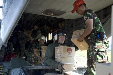 | Keywords: US Navy 091009-N-9123L-074 Marine Cpl. Casey Hannan, a Meraux, La. native assigned to the Dragons of Marine Medium Helicopter Squadron (HMM) 265, and Indonesian Air Force personnel load a CH-53E Super Stallion helicopter.jpg en PADANG Indonesia Oct 9 2009 Marine Cpl Casey Hannan a Meraux La native assigned to the Dragons of Marine Medium Helicopter Squadron HMM 265 and Indonesian Air Force personnel load a CH-53E Super Stallion helicopter with relief supplies to be delivered to remote areas of west Sumatra Indonesia following two earthquakes Amphibious Force Seventh Fleet is directing the U S military response to a request from the Indonesian government for assistance and support for humanitarian efforts U S Navy photo by Mass Communication Specialist 2nd Class Byron C Linder/Released 2009-10-09 091009-N-9123L-074 Navy http //www navy mil/view_image asp id 76982 U S Navy photo by Mass Communication Specialist 2nd Class Byron C Linder PD-USGov-Military-Navy Images from US Navy location Padang Indonesia CH-53E US Marine Corps |